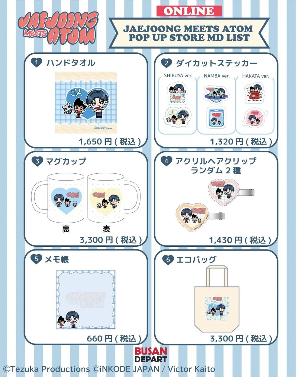 『JAEJOONG MEETS ATOM』POP UP STOREグッズのオンライン販売が決定いたしました!