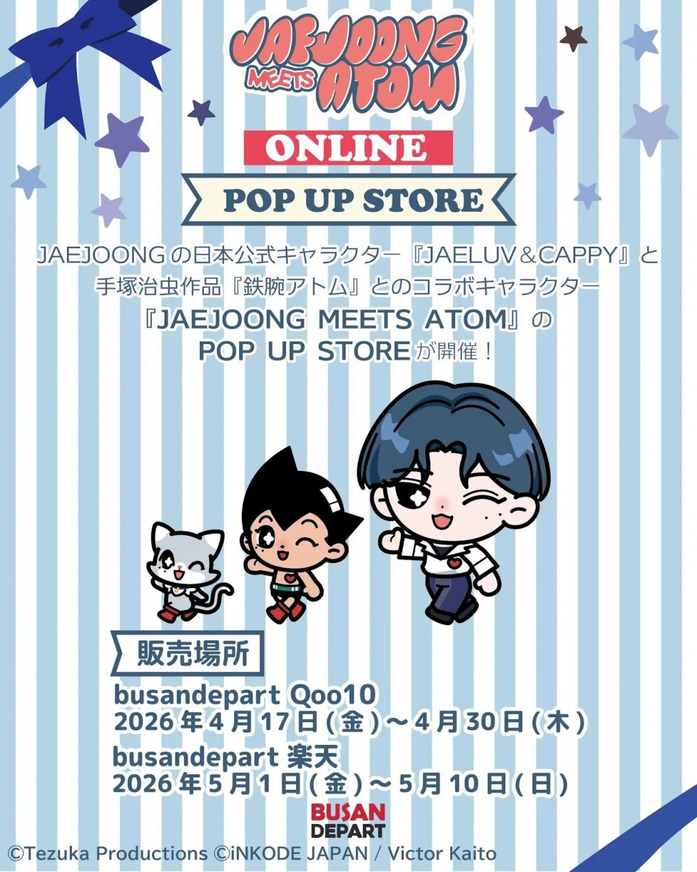 『JAEJOONG MEETS ATOM』POP UP STOREグッズのオンライン販売が決定いたしました!